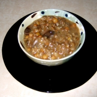 - Place the lentils, onions, garlic, bay leaf, mushrooms and liquid in the vessel of choice ( stove top pot, slow cooker or pressure cooker ) and cook until lentils are softened and tender.