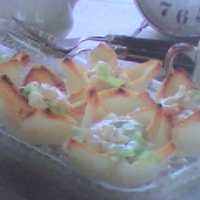 - Cut shrimp and/or Crab meat into fairly small chunky pieces.